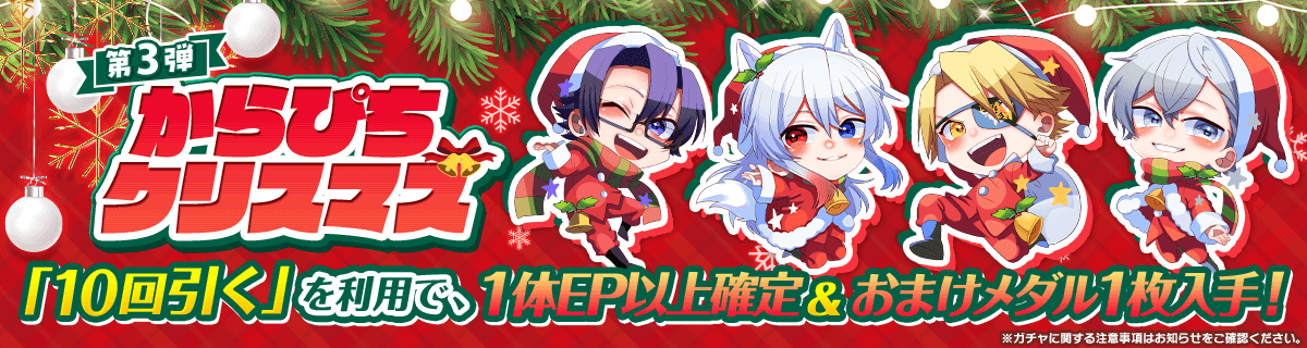 また、10回引くを利用すると「EP以上が1つ以上確定」&「からぴちクリスマスメダル1枚」入手できます!