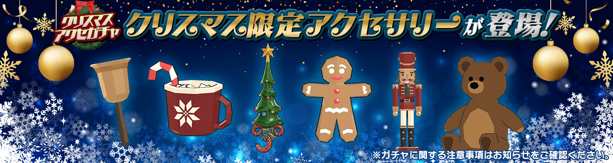 クリスマス限定アクセサリーがラインアップされたアクセサリーガチャを開催します。