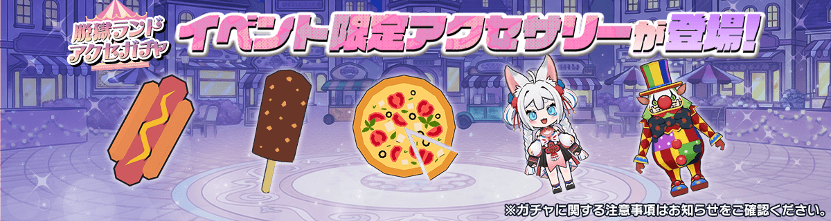 脱獄ランド開園限定アクセサリーがラインアップされたアクセサリーガチャを開催します。