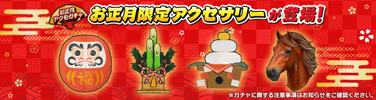 お正月限定アクセサリーがラインアップされたアクセサリーガチャを開催します。